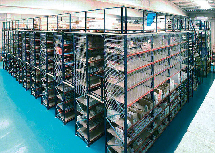 철망 보호 장치와 함께 다단계 산업용 철기 저장 메잔라인 랙